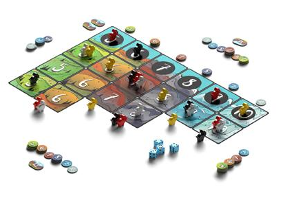 Roll some dice, then choose how to combine them to move your goats up the mountains. There is only room for one goat at the top of each mountain. The longer you stay at the top, the more points you score. It's a game about timing. You need to not just get to the top of the mountain, but get there when no one else is in position to knock you off.